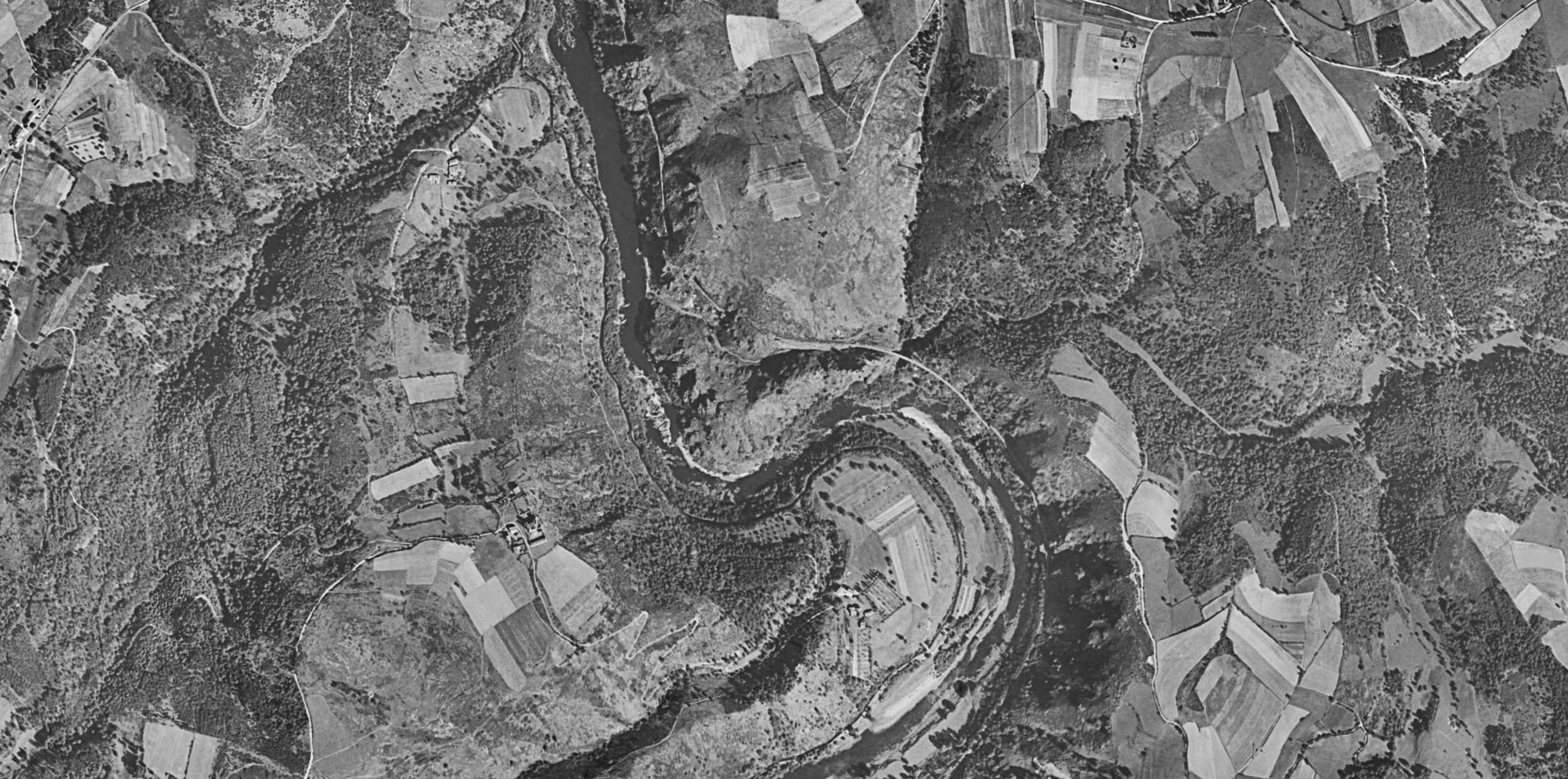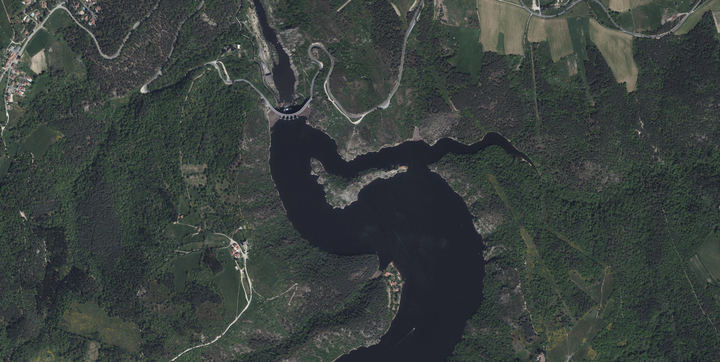 Het kasteel is omringd door water na de bouw van de stuwdam van Grangent.