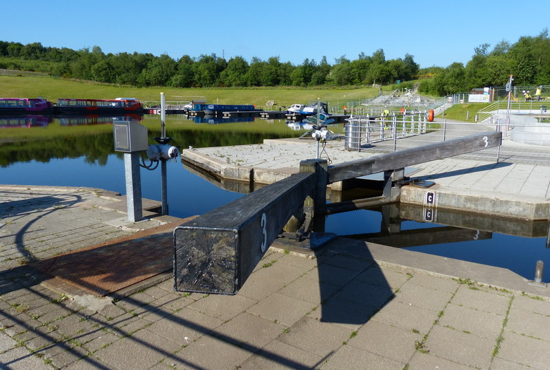 De Gouden jubileumsluis is de verbinding tussen het Forth and Clyde Canal en het bassin waar het Falkirkwheel op aansluit.