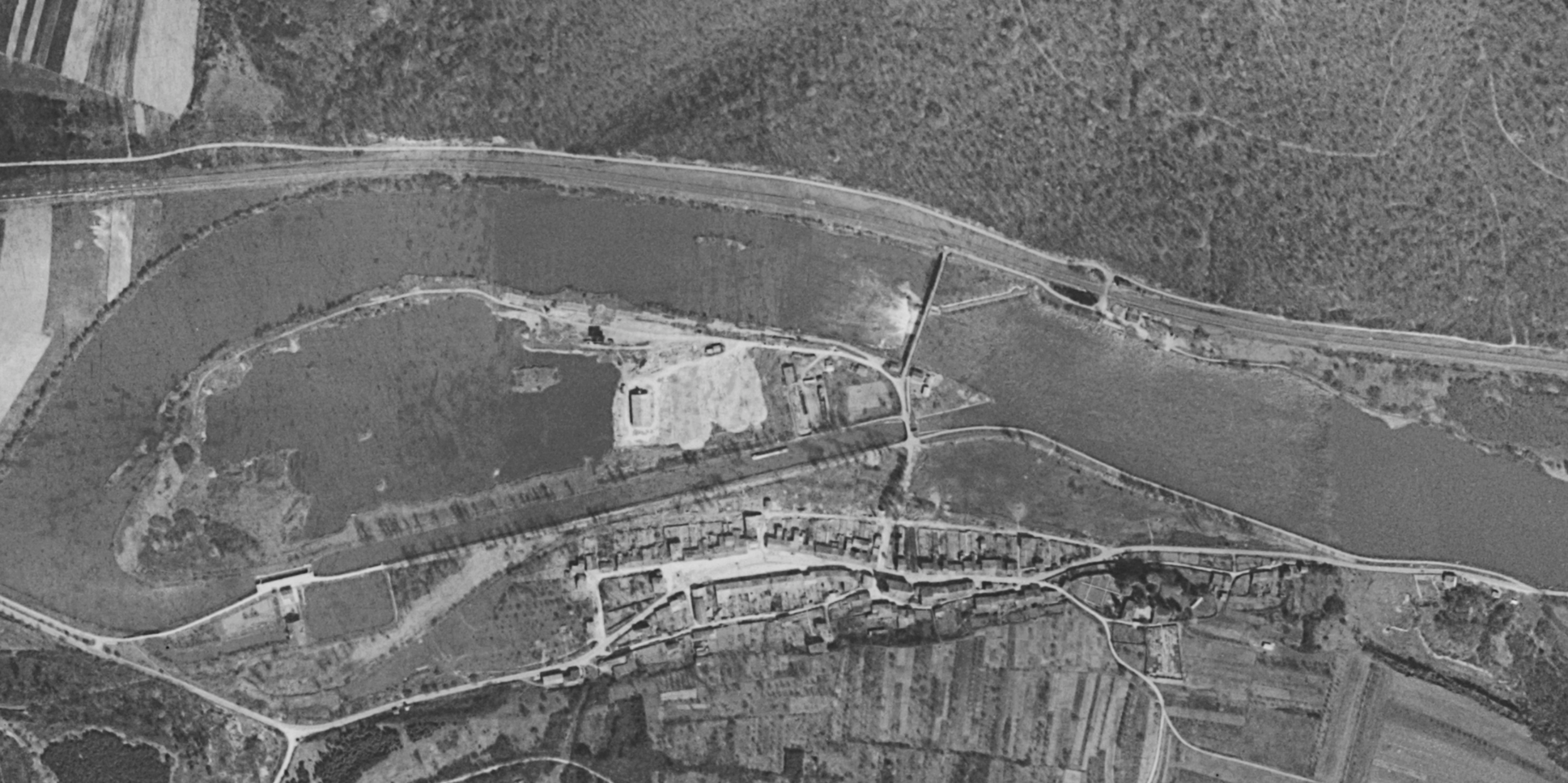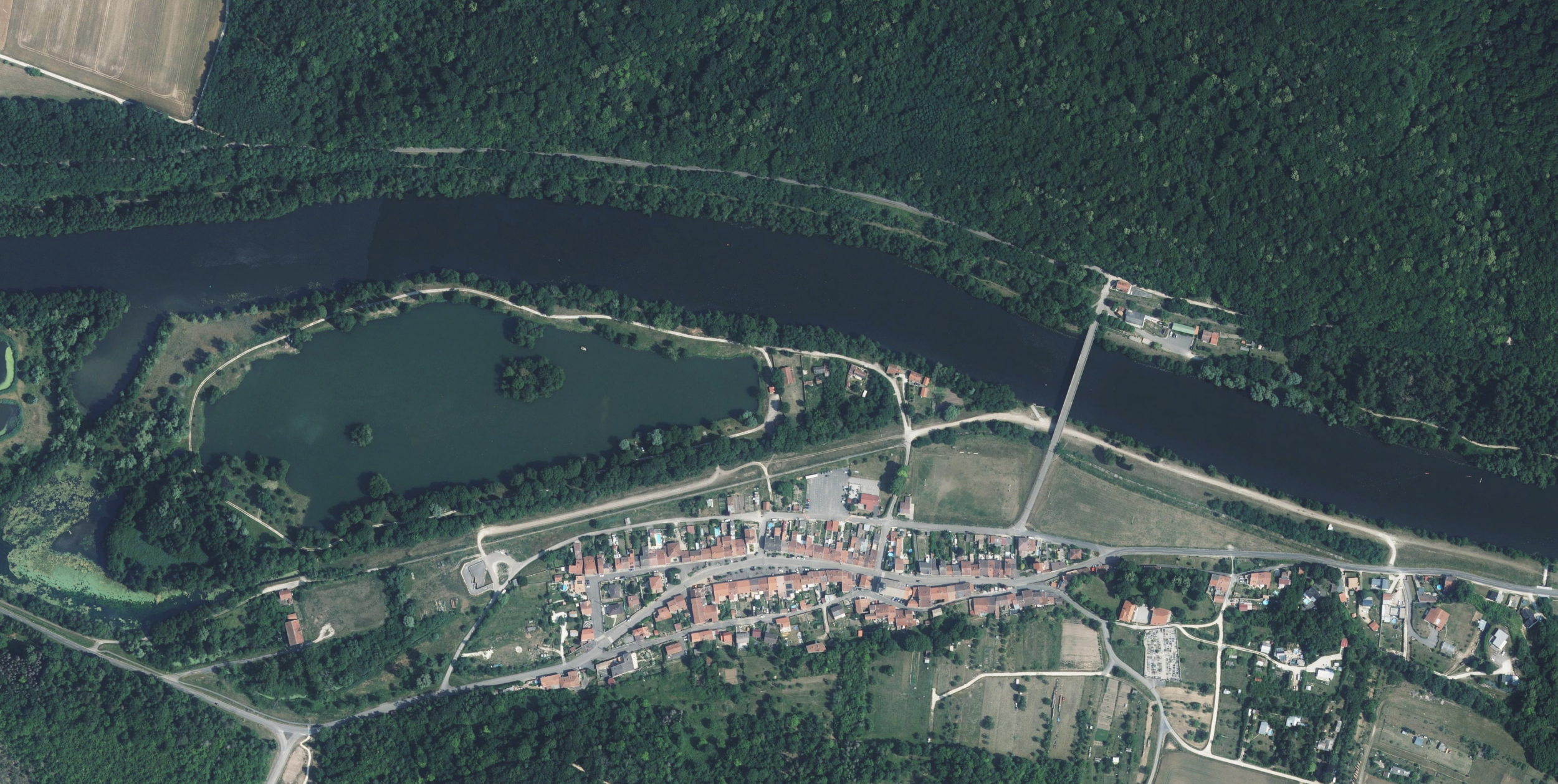 De scheepswerf ligt aan een verlaten kanaaldeel door de Moezel kanalisatie in de jaren 70.