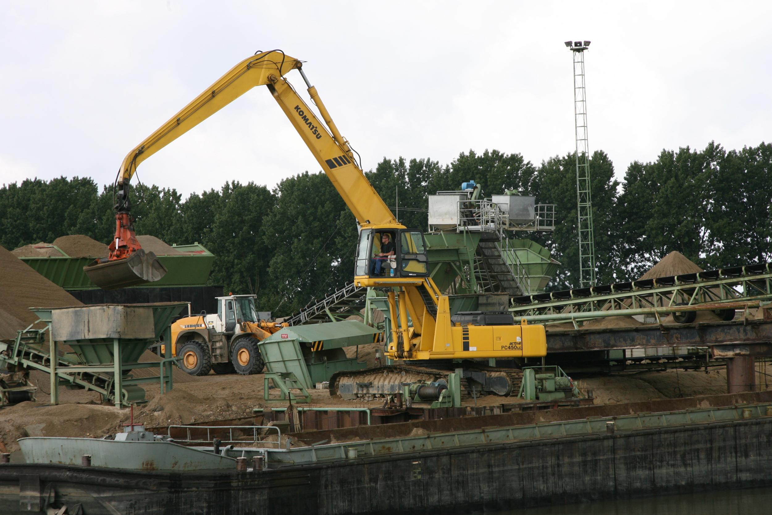 De overslaghaven van Edelzand, tussen Maasbracht en Stevensweert. De plaats ligt vlakbij de scheepswerf van Maasbracht.